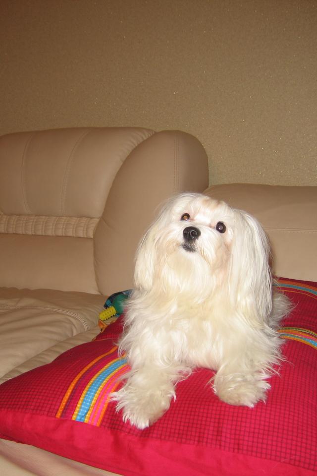 » Обои Белая болонка на диване