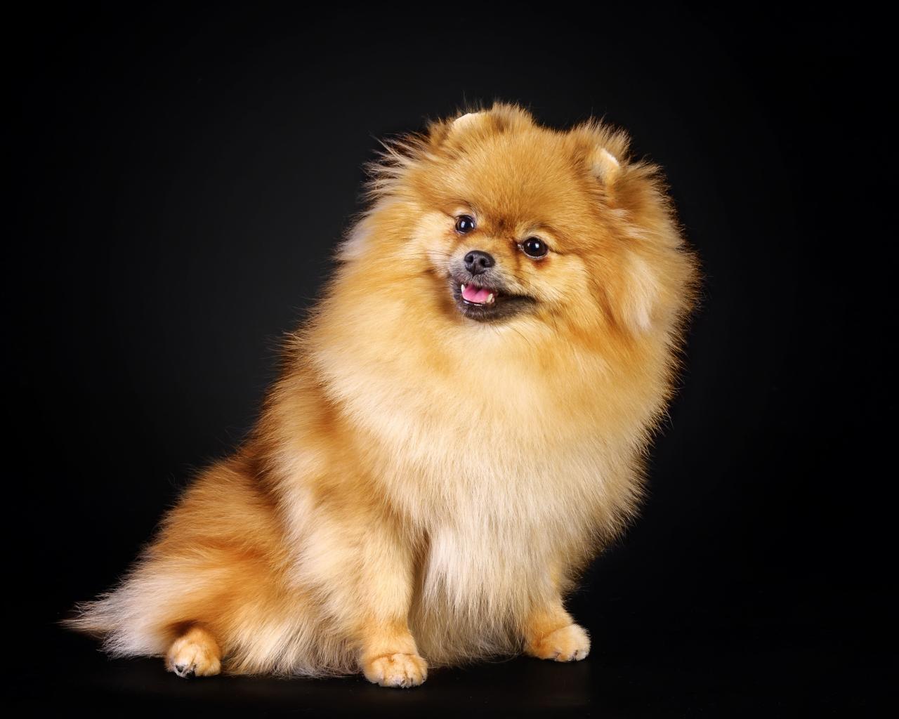 » Обои Шпиц на черном фоне