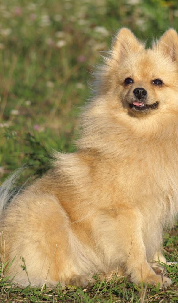 Обои Шпиц на лугу улыбается