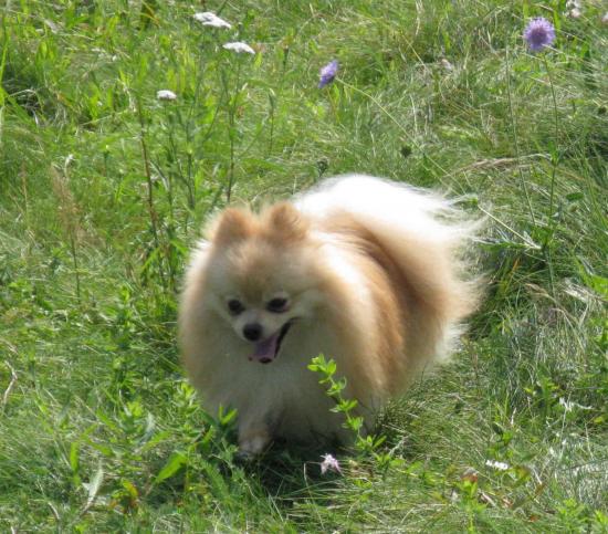 » Обои Шпиц бежит по лугу