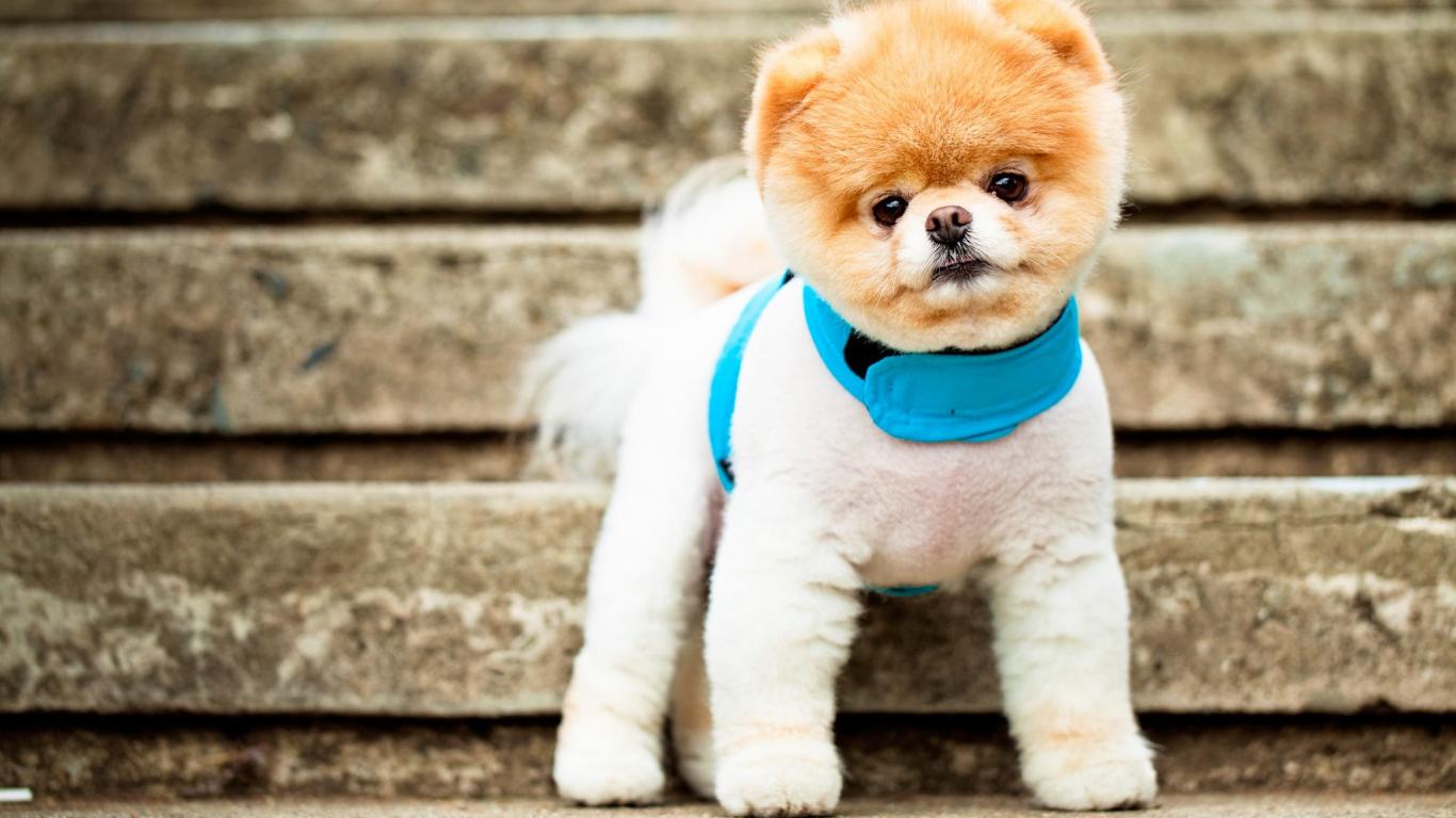 » Обои Померанский шпиц на ступеньках