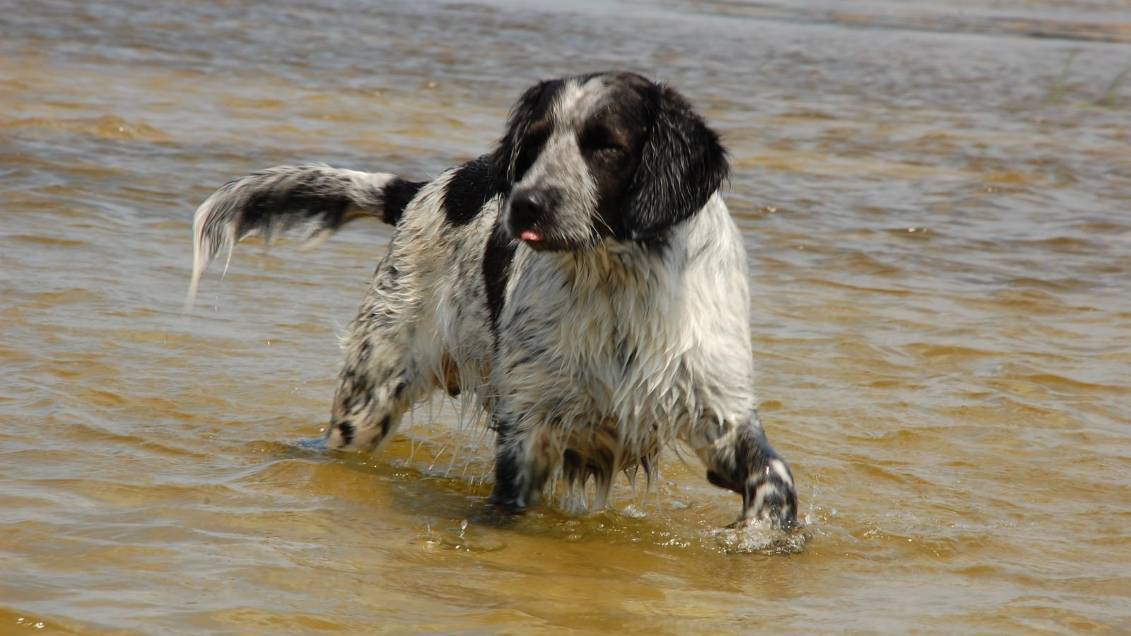 Обои Спаниель играет в воде