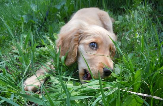 Обои Собака английский спрингер спаниель вылез из корзинки
