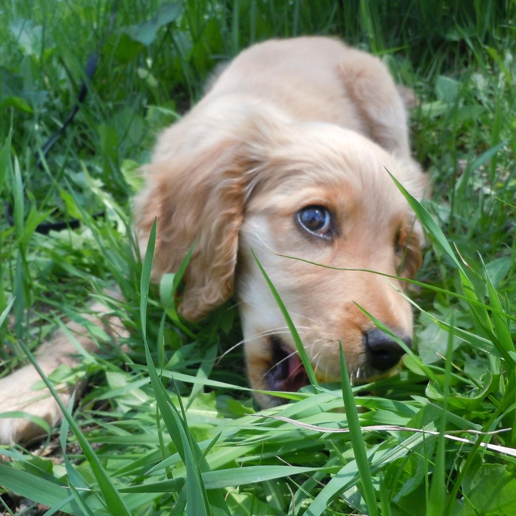 Обои Собака английский спрингер спаниель вылез из корзинки