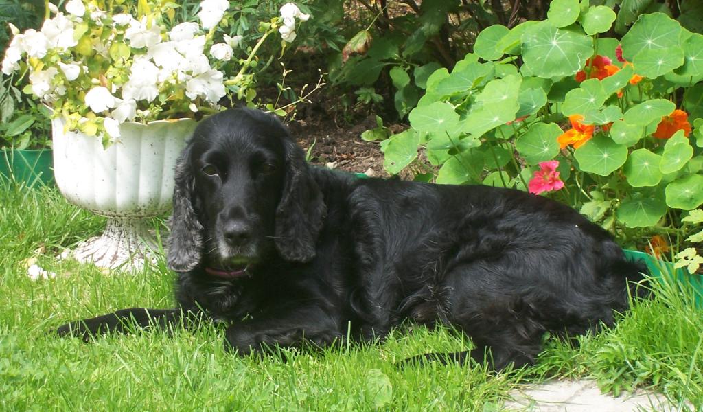 Обои Черный спаниель лежит