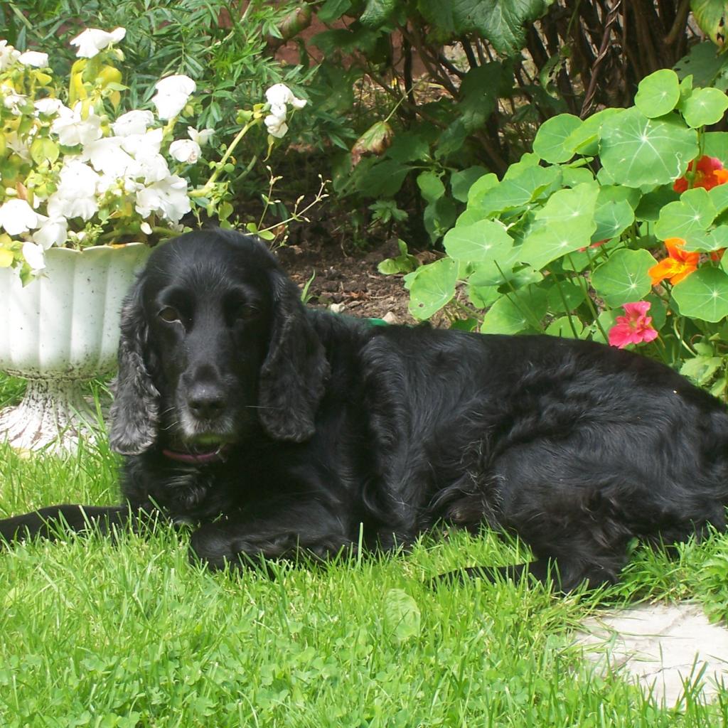 Обои Черный спаниель лежит
