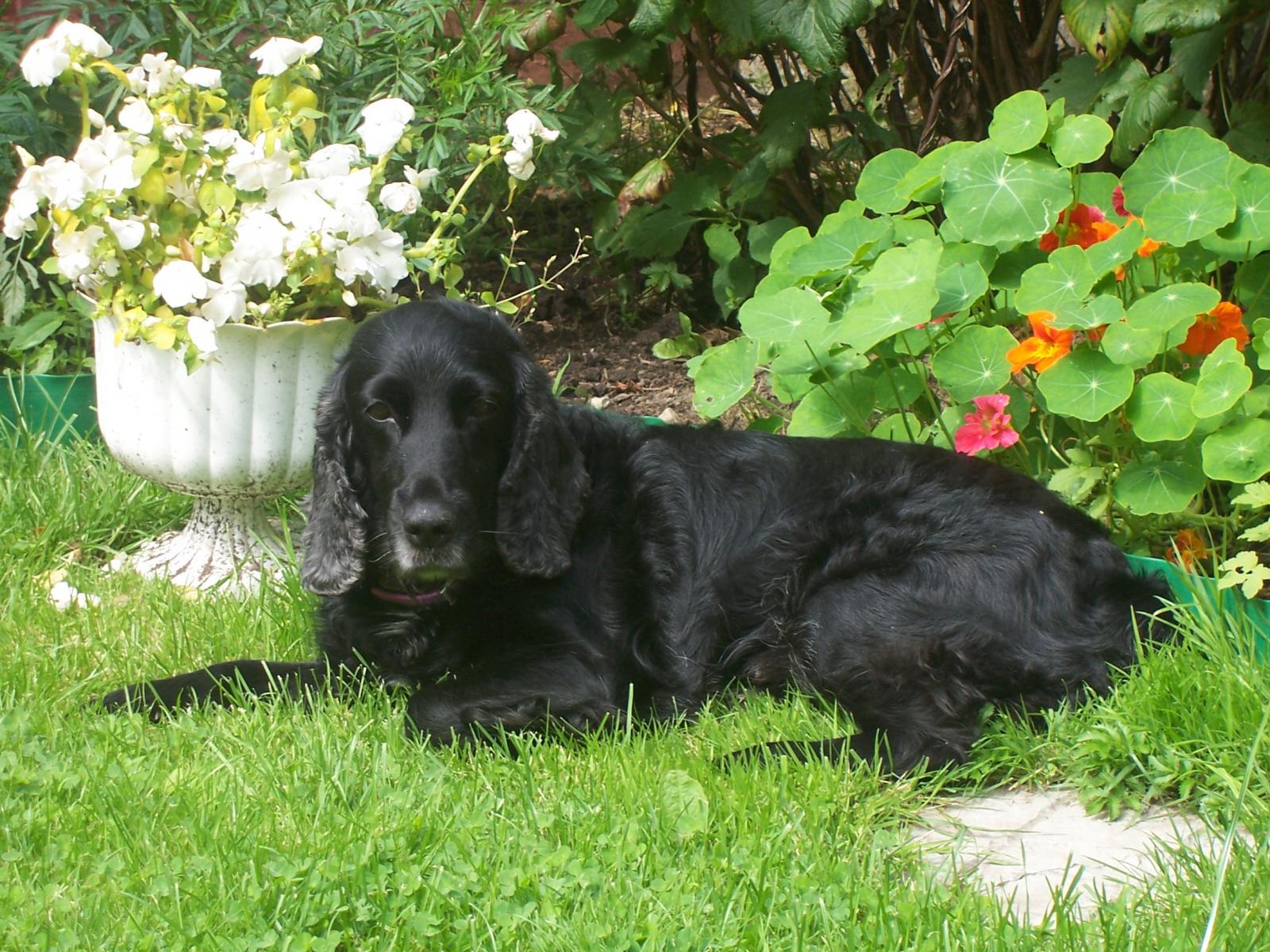 Обои Черный спаниель лежит