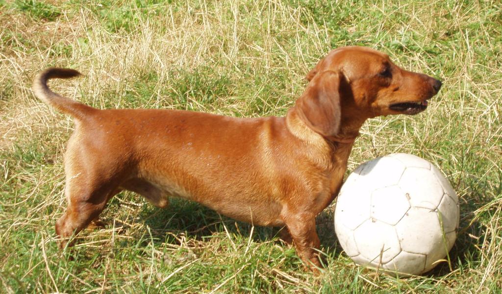 » Обои Такса играет в футбол