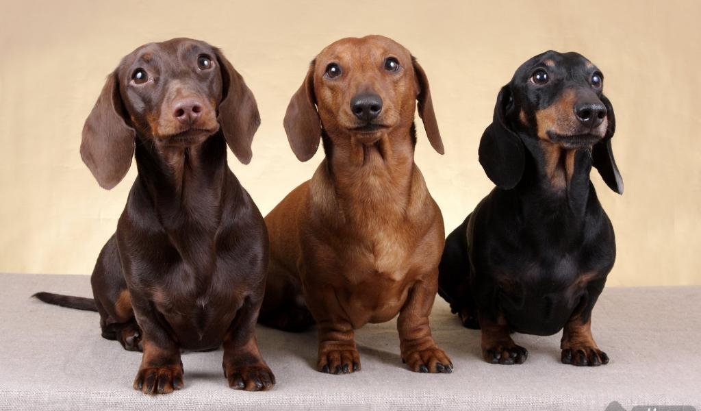 » Обои Три таксы смотрят вверх