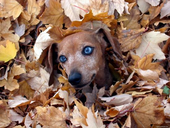 » Обои Такса в листве