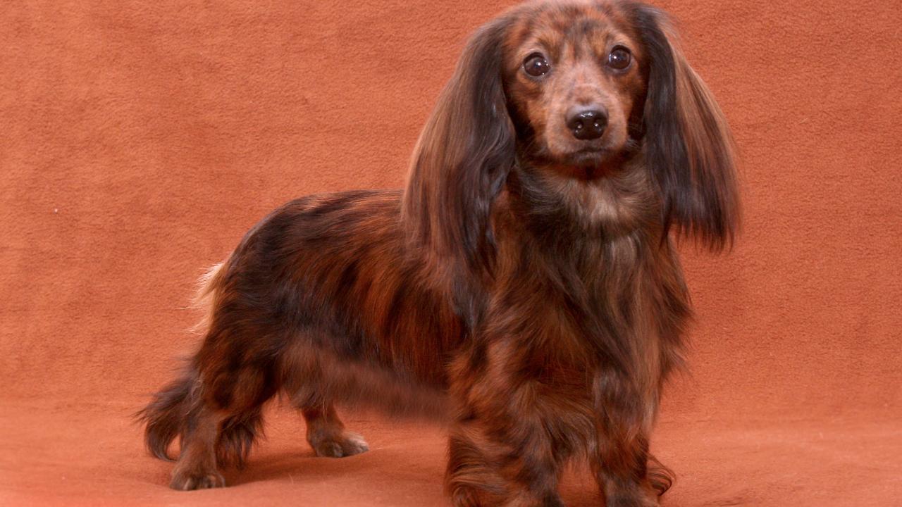 Обои Пушистая такса позирует