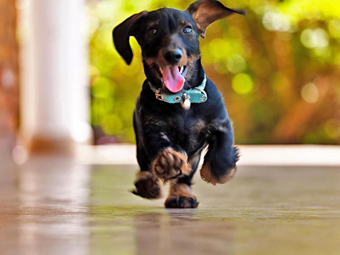 » Обои Радостная такса бежит
