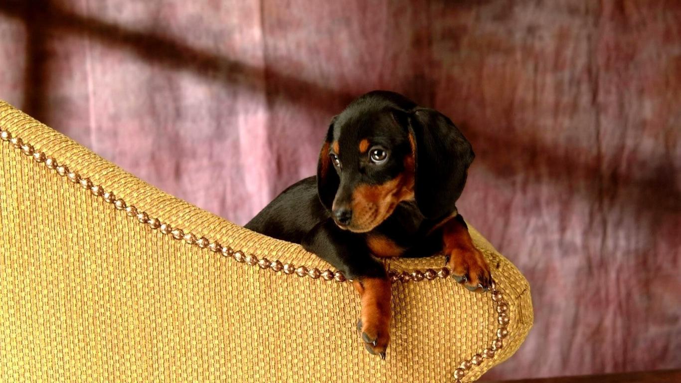 Обои Такса сидит на кресле