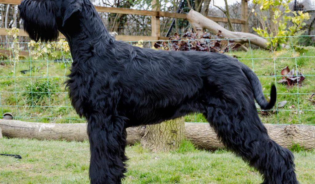 Обои Черный шнауцер в вольере