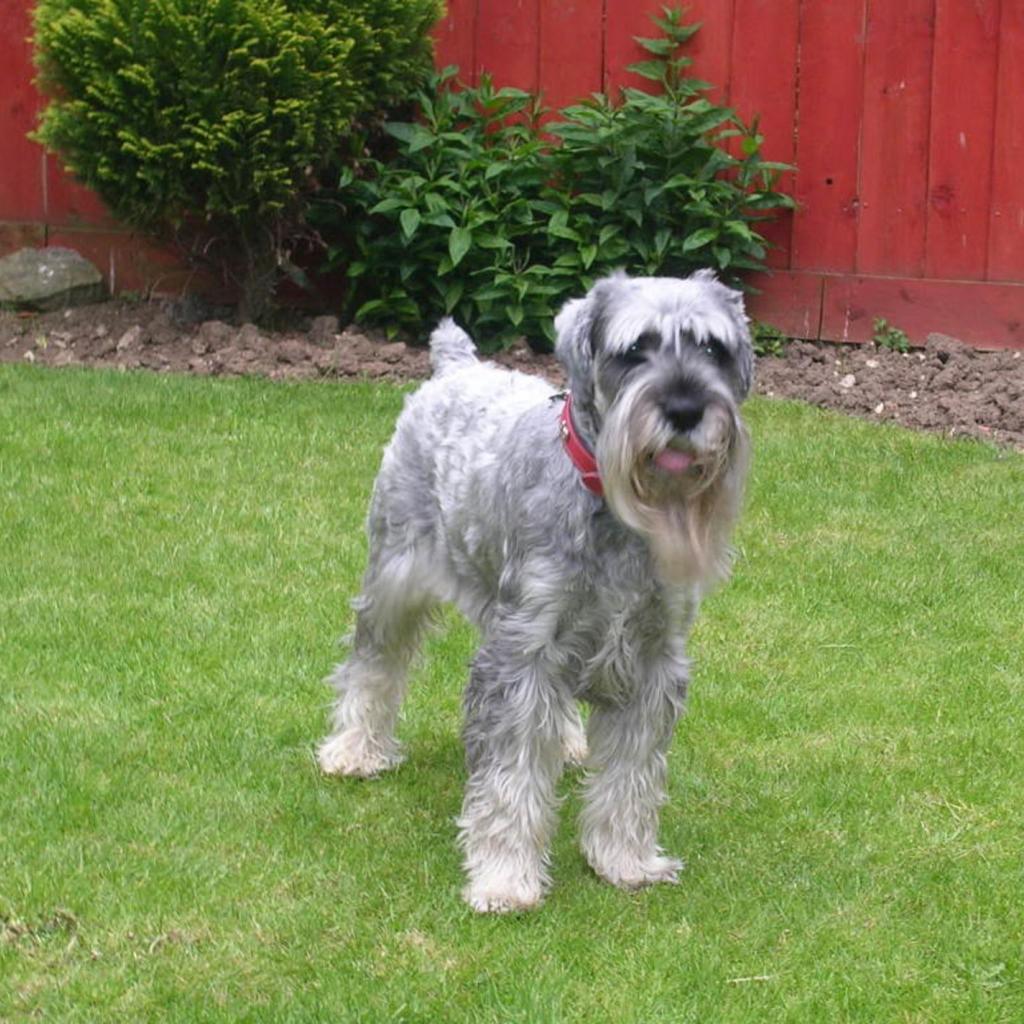 Обои Лохматый шнауцер на газоне