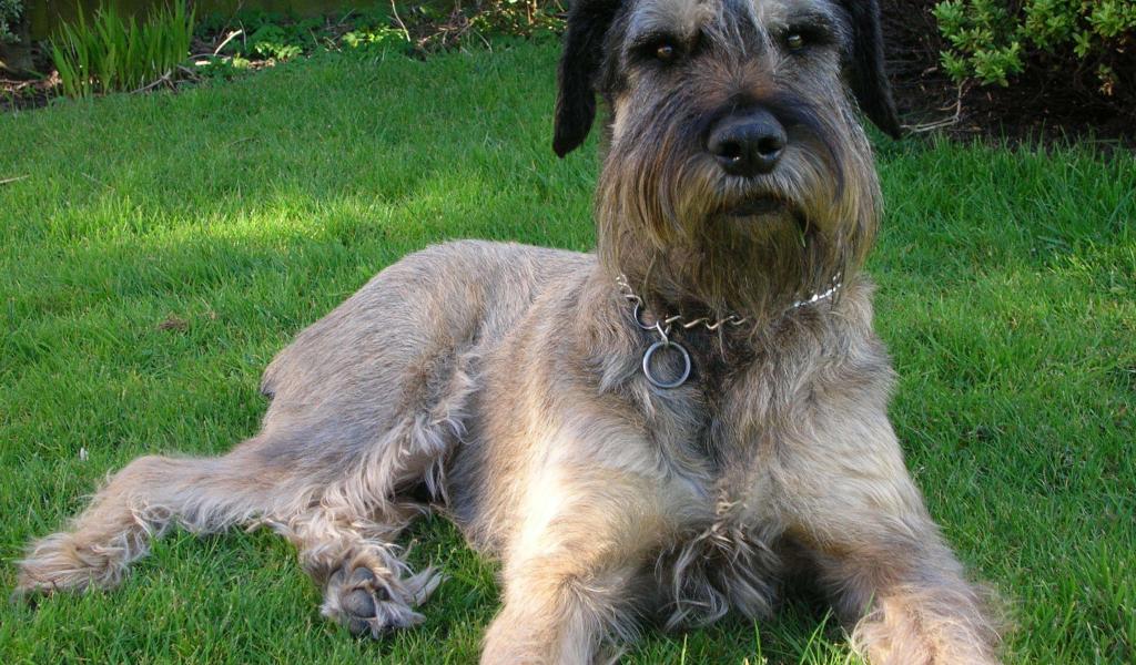 » Обои Красивый шнауцер лежит