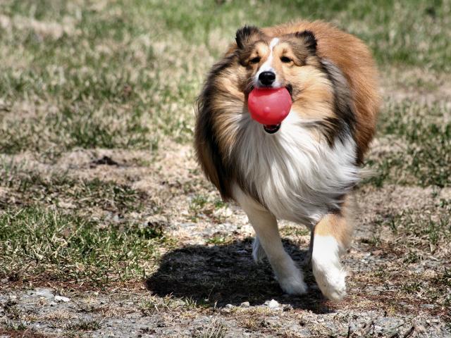 Обои Колли играет с шариком