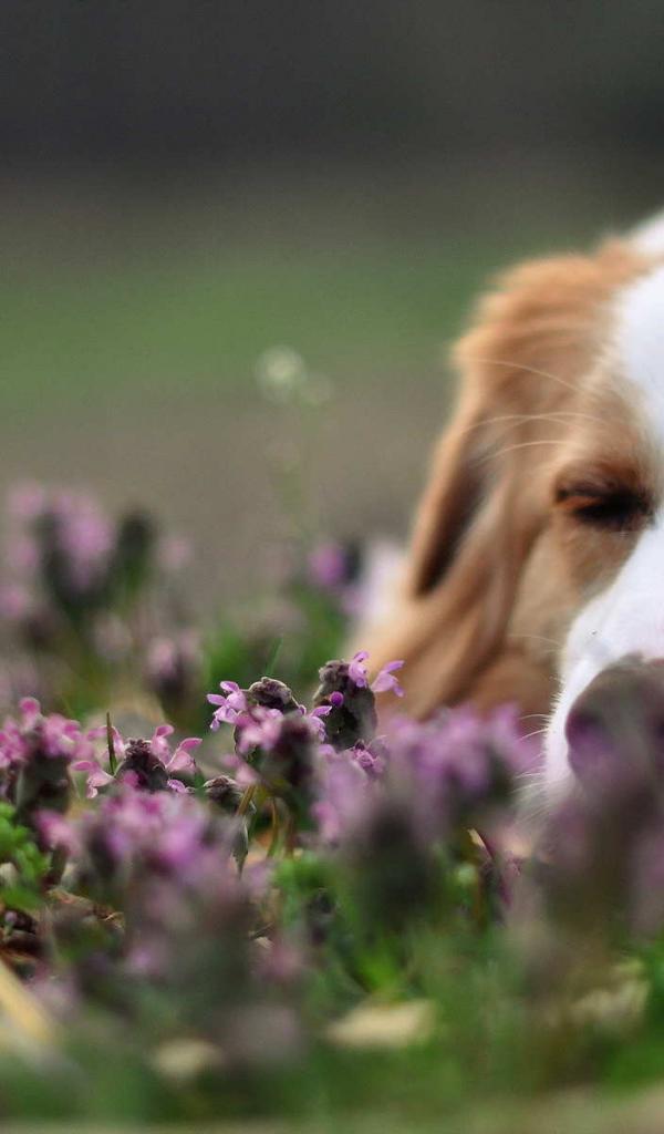 Обои Колли спит в цветах