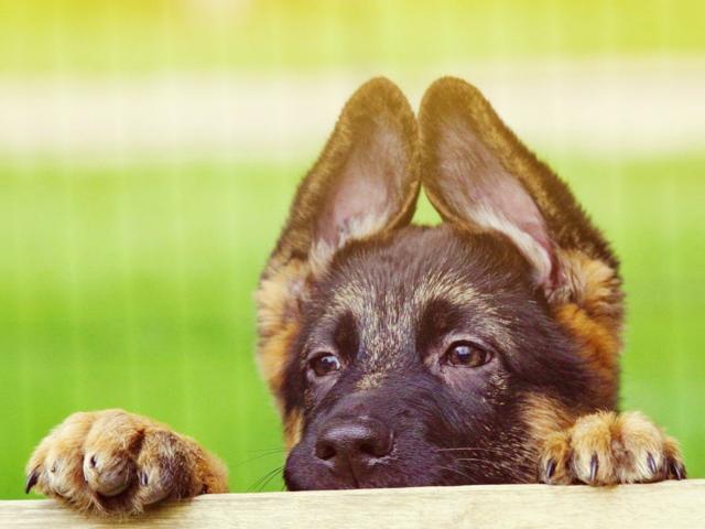 Обои Щенок немецкой овчарки выглядывает