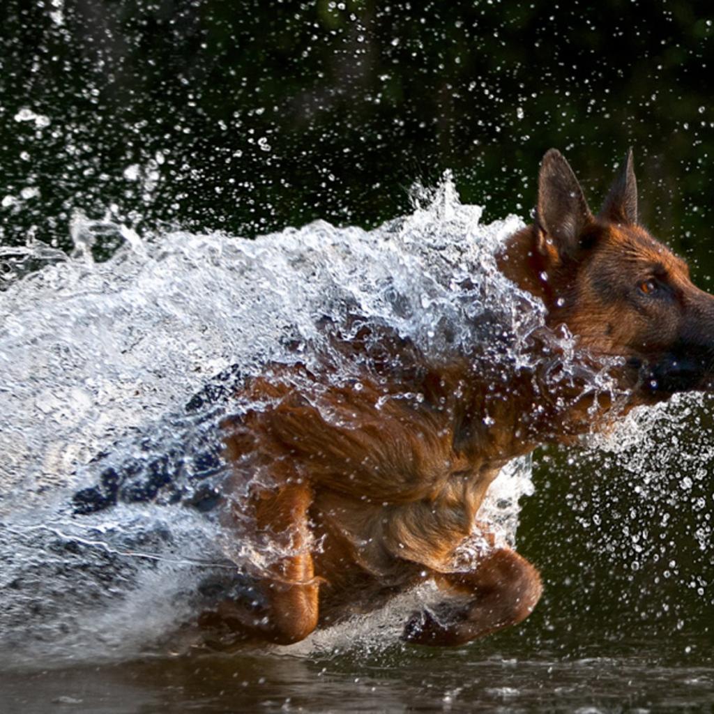 » Обои Немецкая овчарка бежит в воде