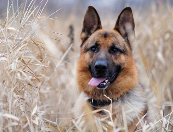 Обои Собака немецкая овчарка в зарослях