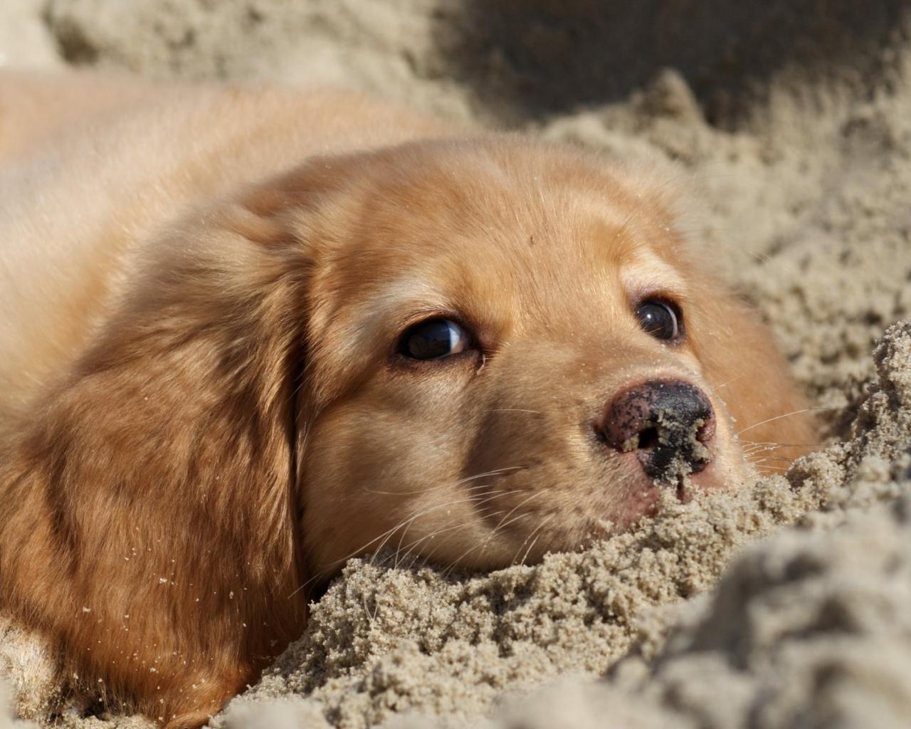 Обои Ретривер в песке