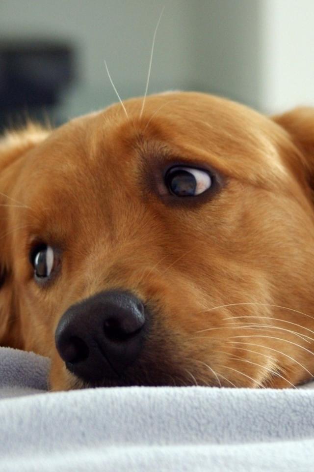 Обои Золотой ретривер в кровати