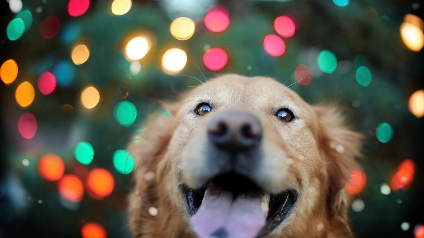 Обои Ретривер на фоне огней