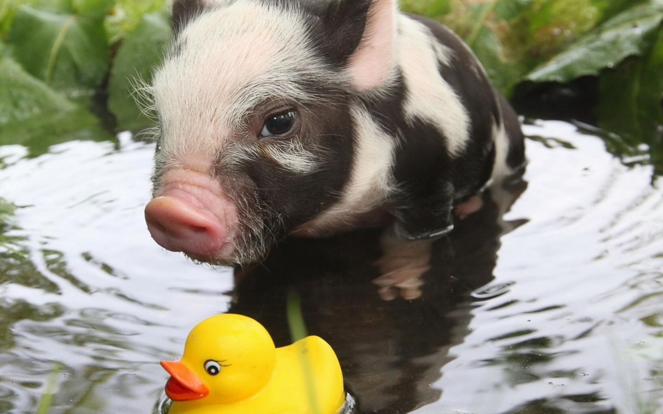 Обои Вьетнамский поросенок играет в воде