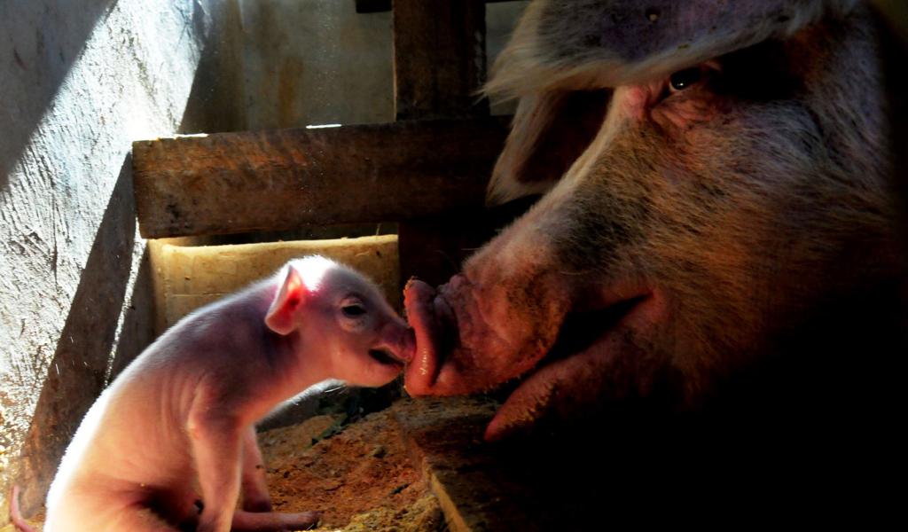 Обои Свинья и поросенок