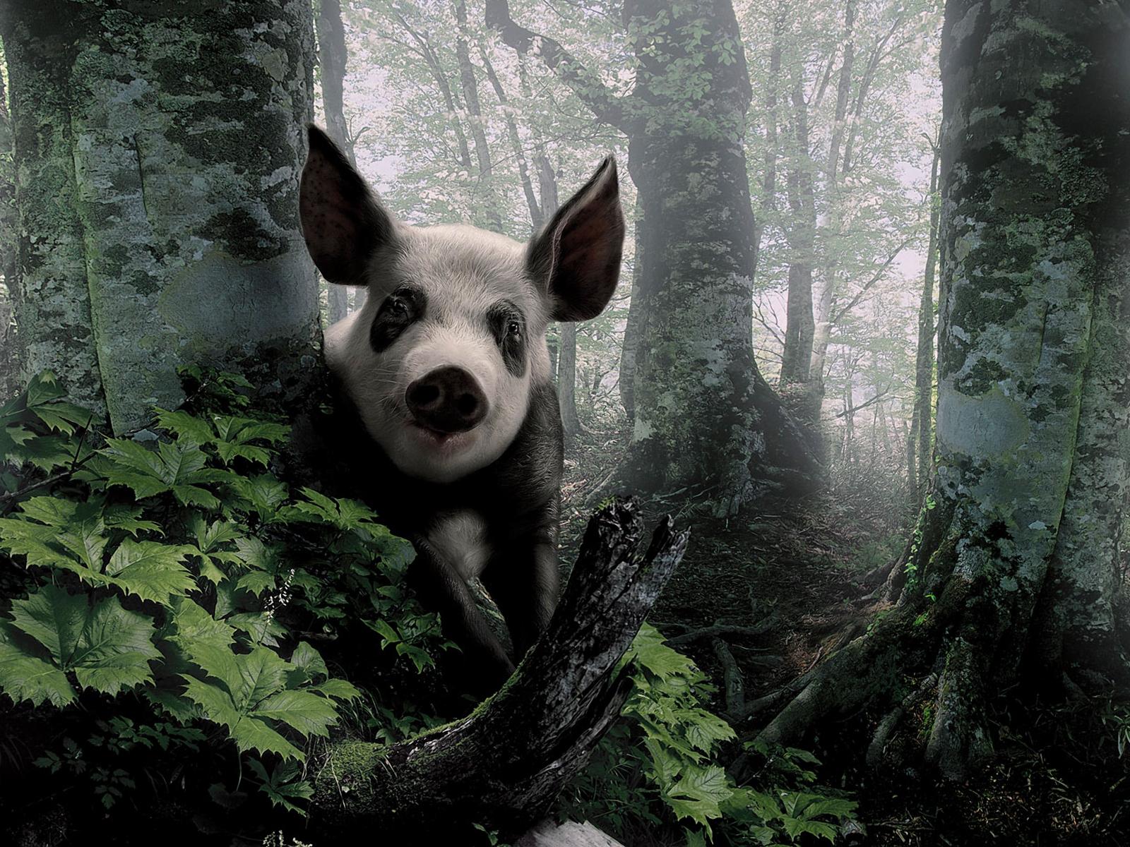 Обои Свинья в лесу