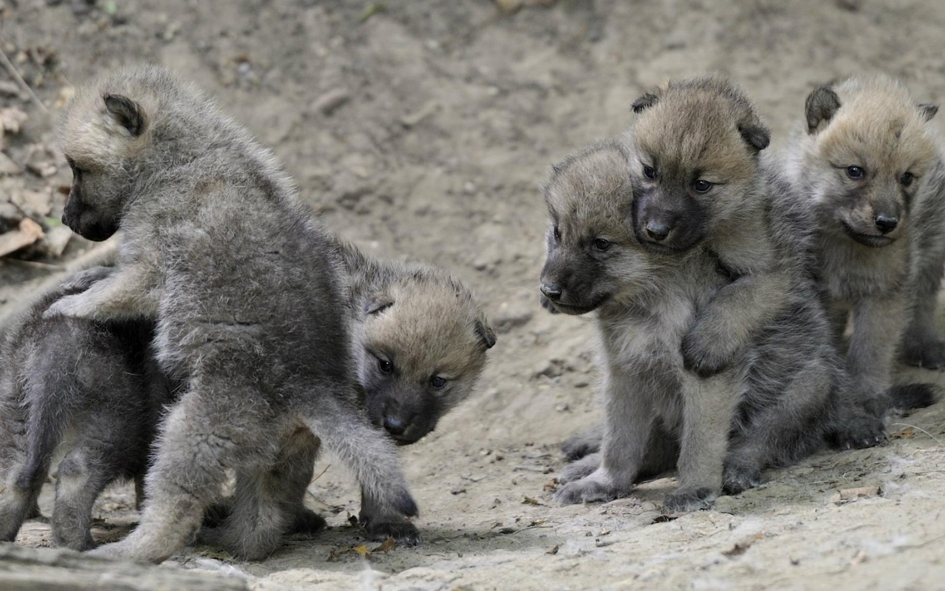 Обои Выводок детей волчат