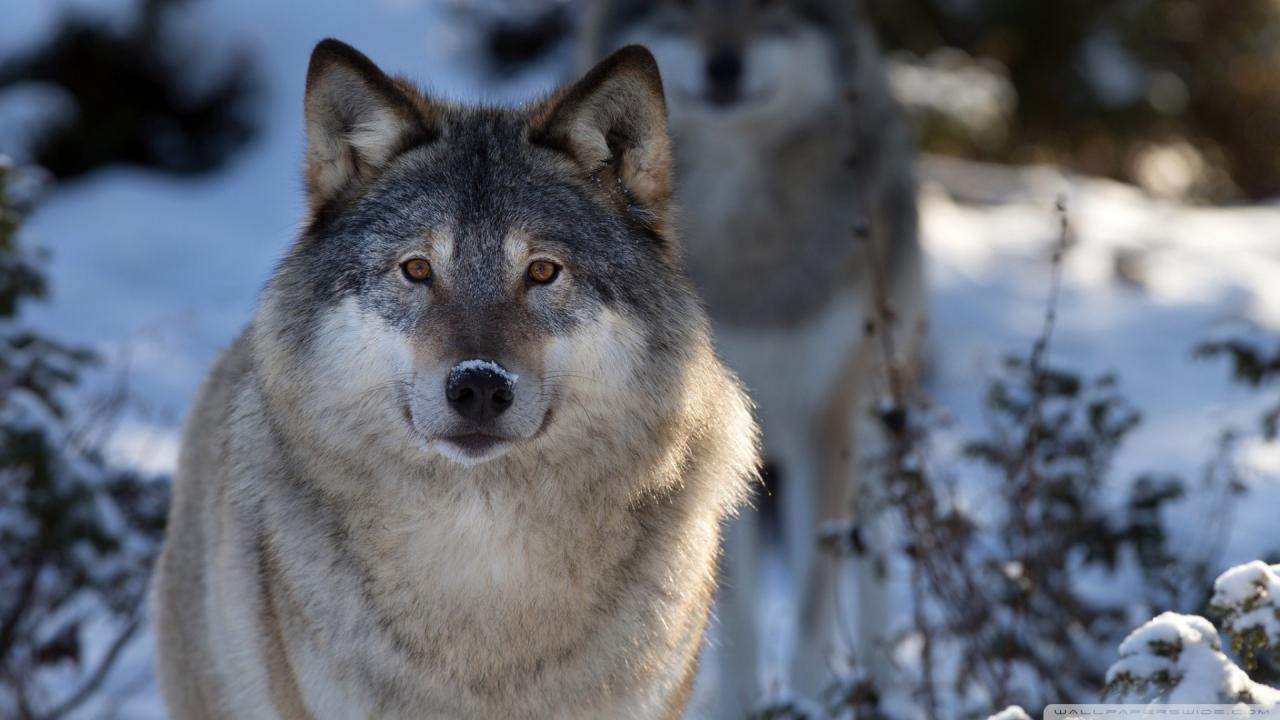 Обои Волк в зимнем лесу