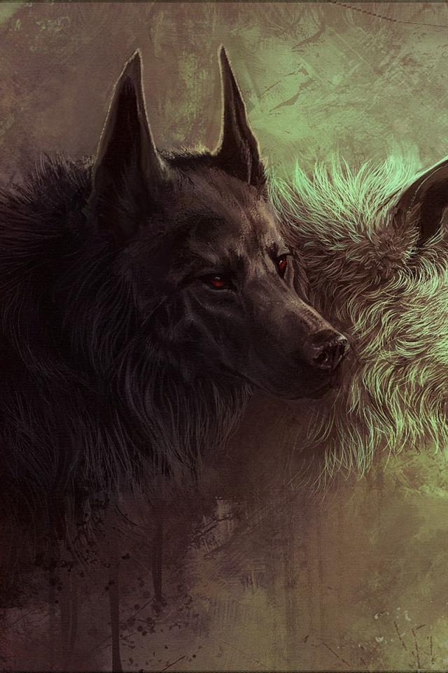 Обои Красные глаза, волки, шрам