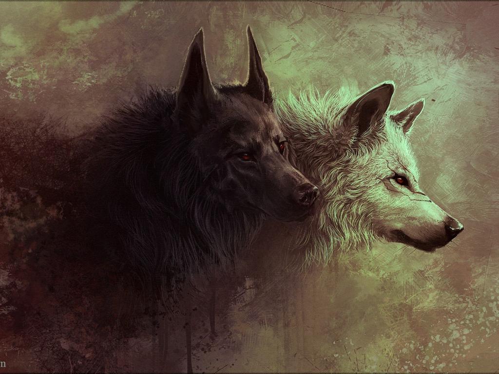 Обои Красные глаза, волки, шрам