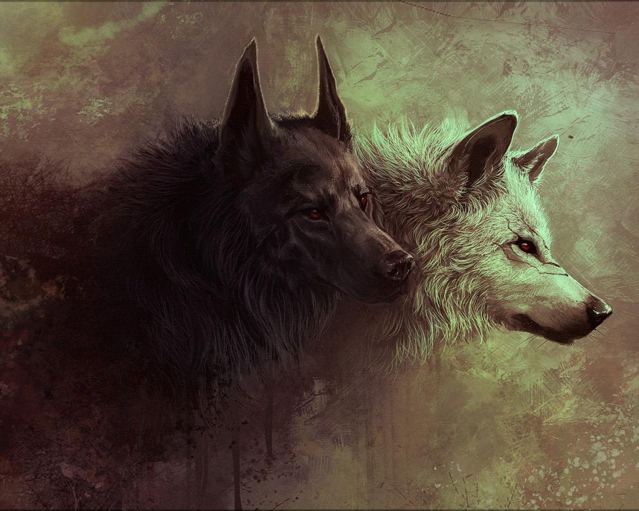 Обои Красные глаза, волки, шрам