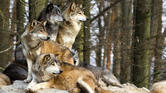 Обои Стая волков в лесу