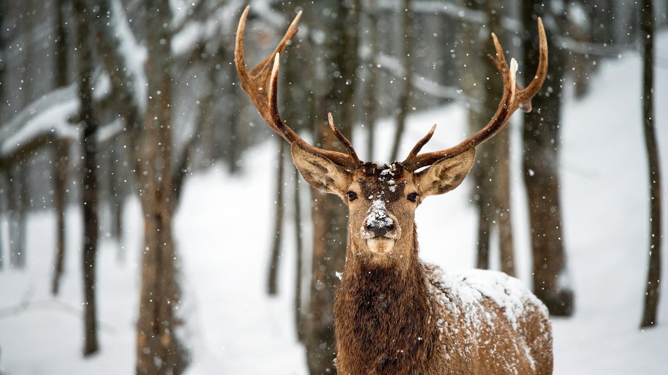 Обои Гордый олень в зимнем лесу