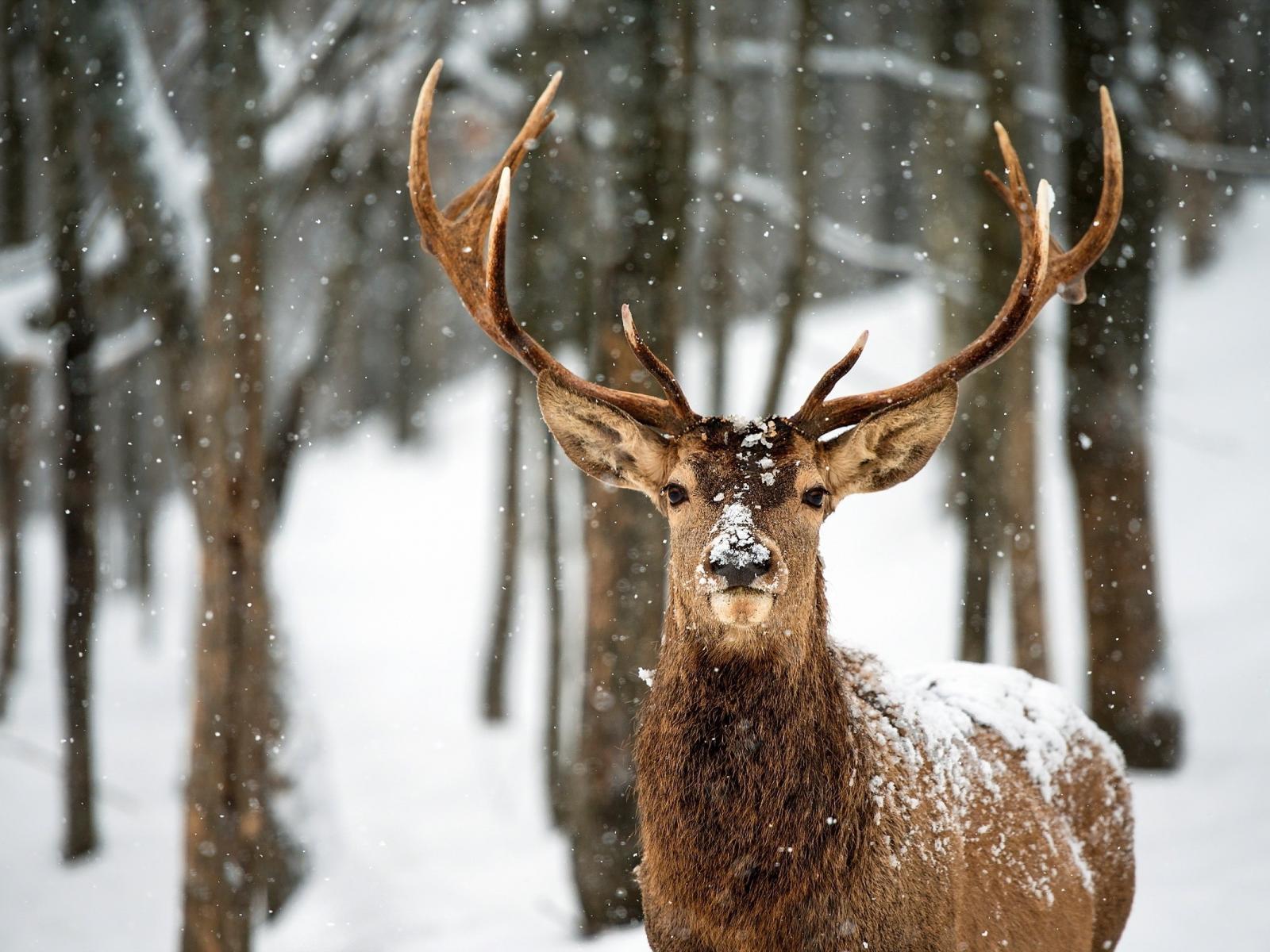 Обои Гордый олень в зимнем лесу
