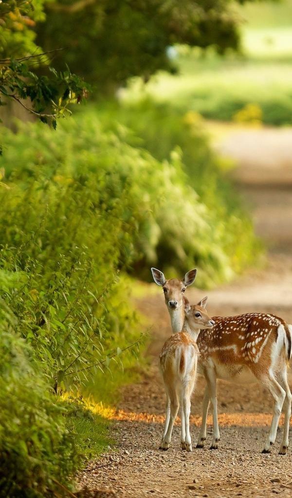 Обои Маленькие олени на тропинке