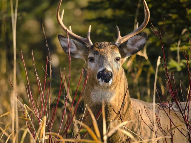 Обои Олень лежит в траве