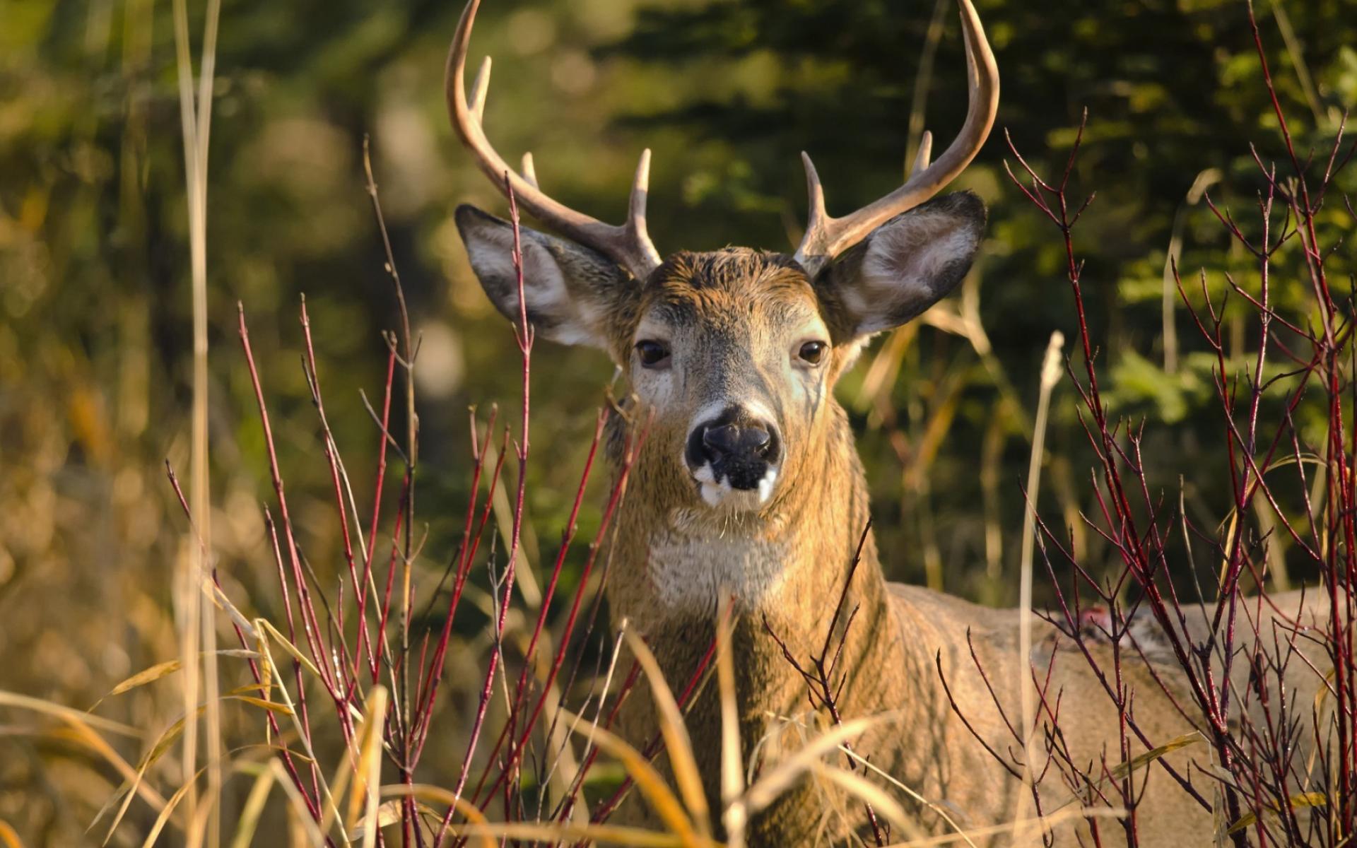 Обои Олень лежит в траве