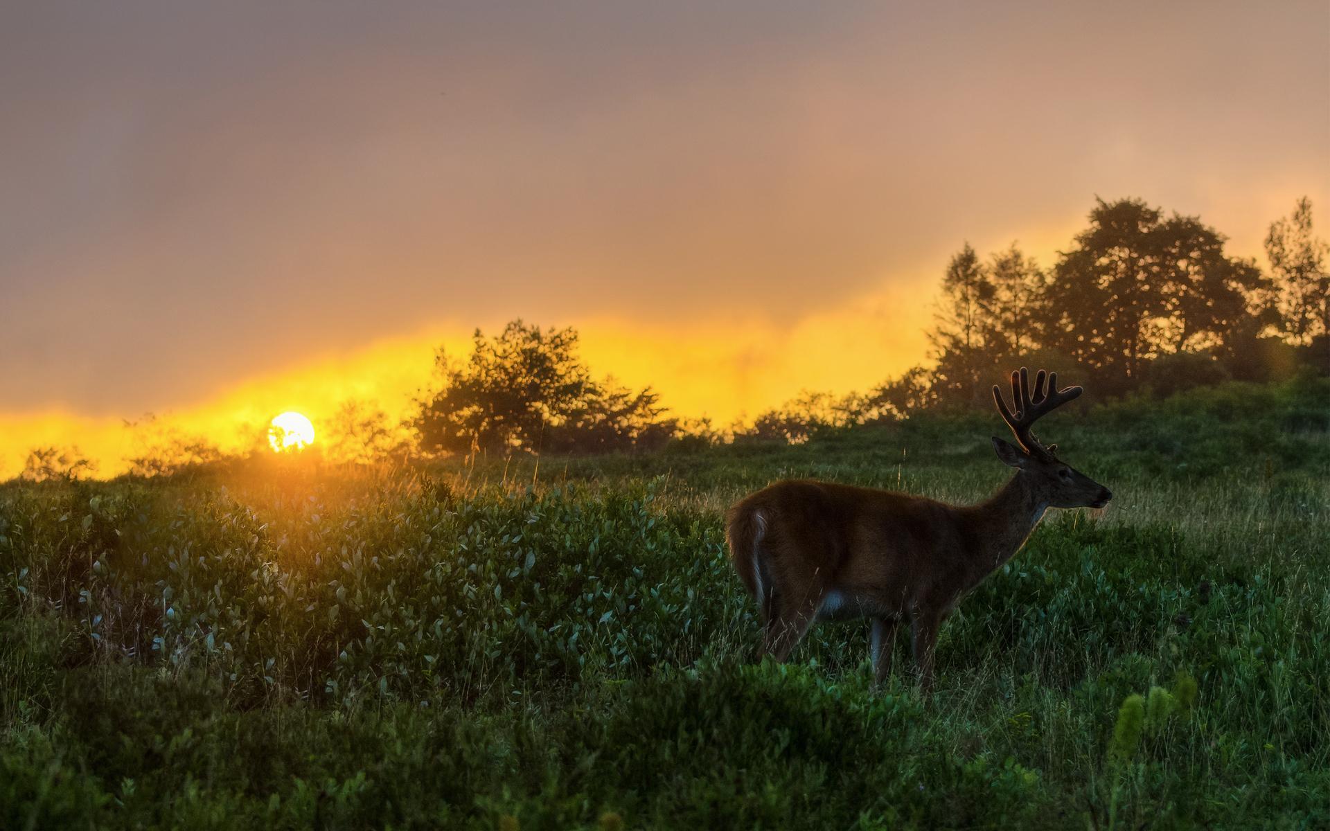 Обои Олень на закате