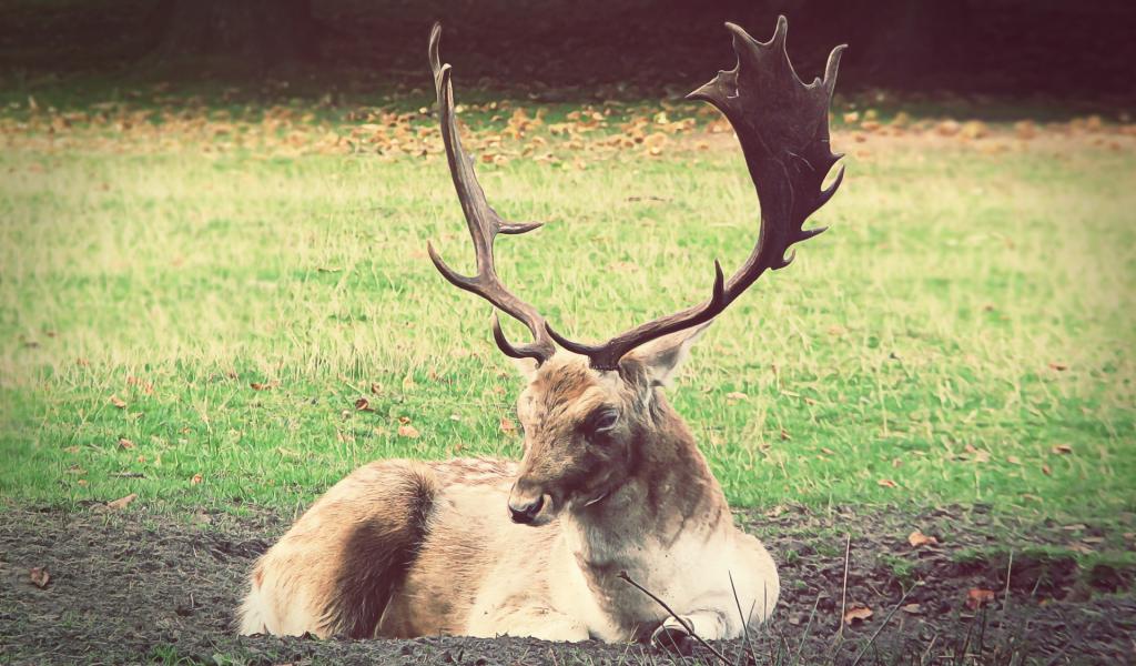 Обои Олень лежит на земле