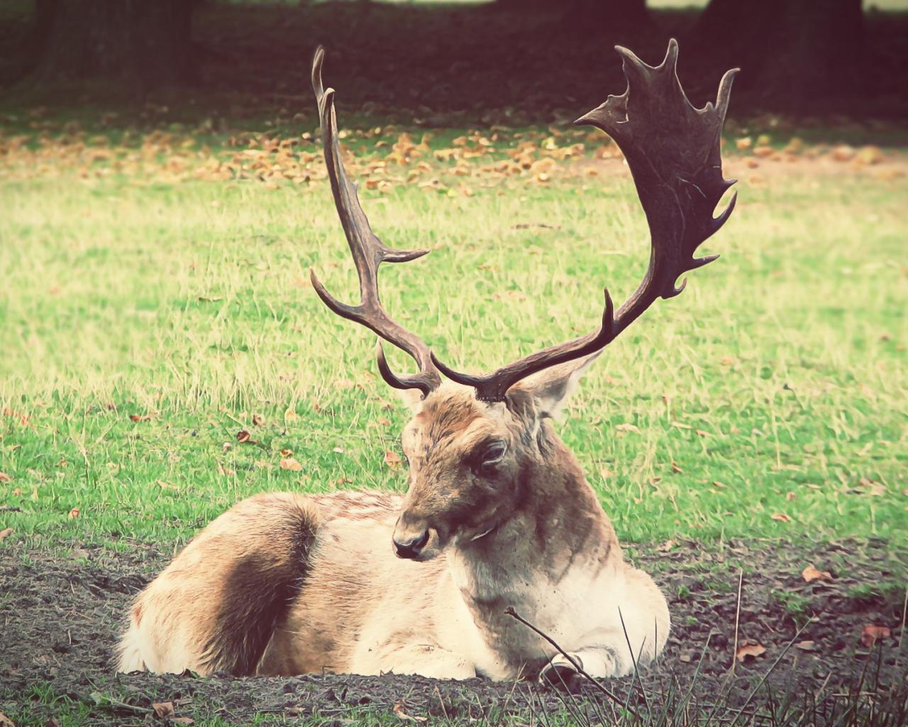 Обои Олень лежит на земле
