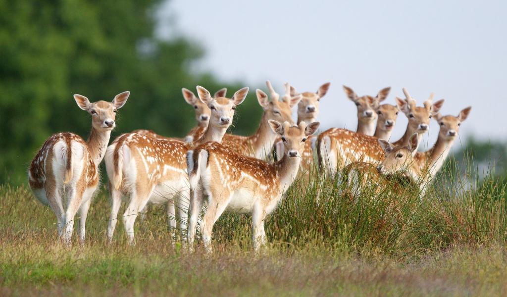 Обои Стадо Пятнистых оленей