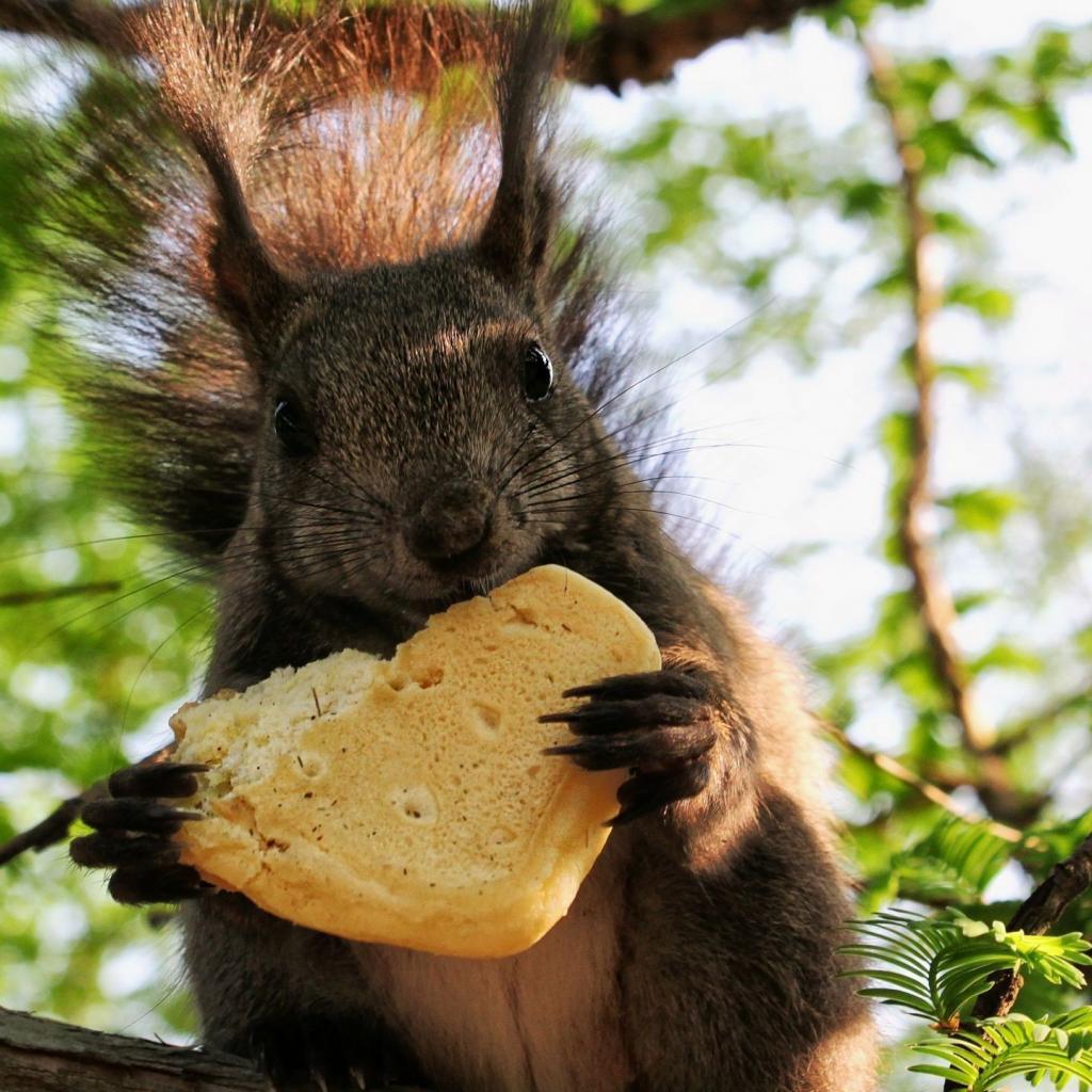 Обои Белка ест булочку