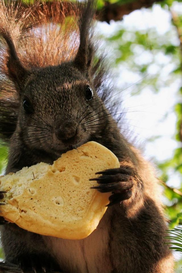 Обои Белка ест булочку