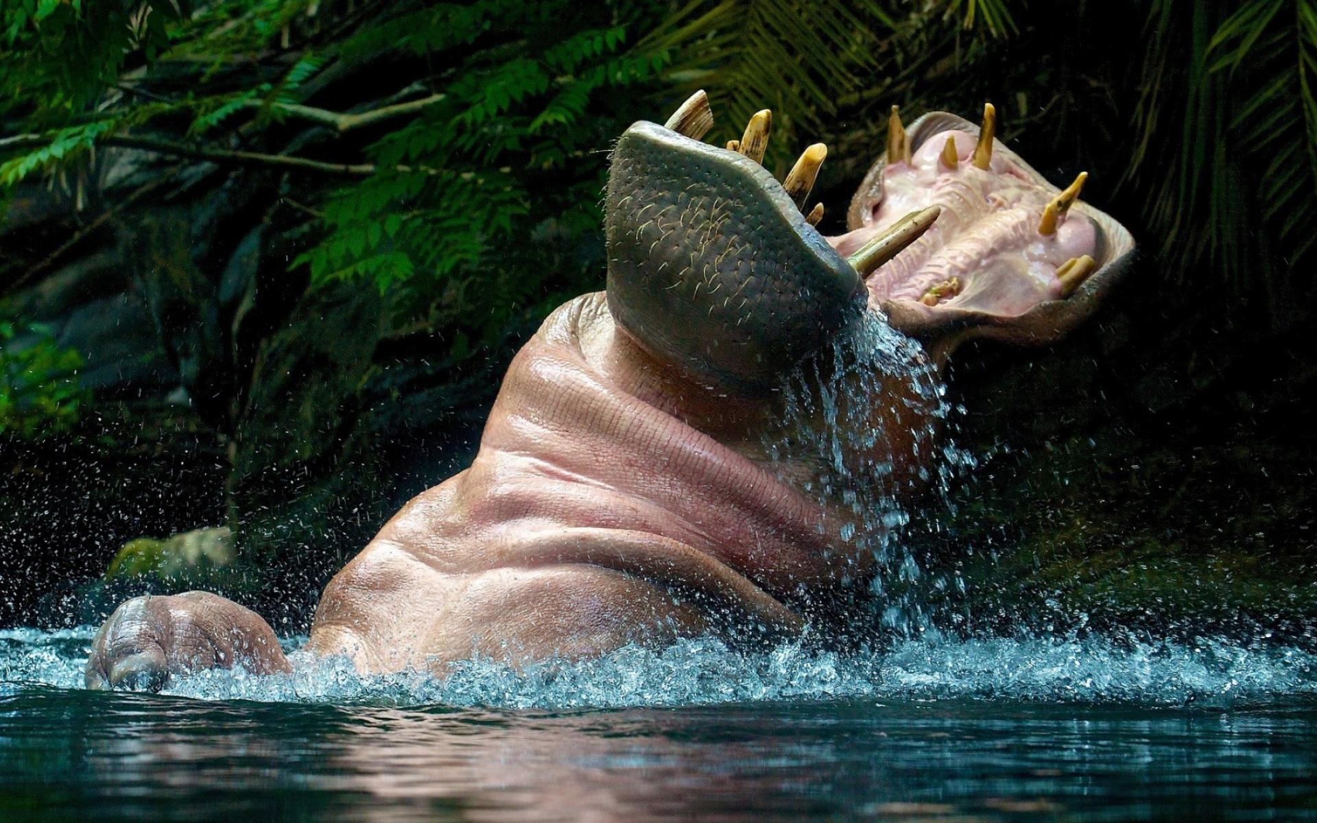 Обои Бегемот играет в воде