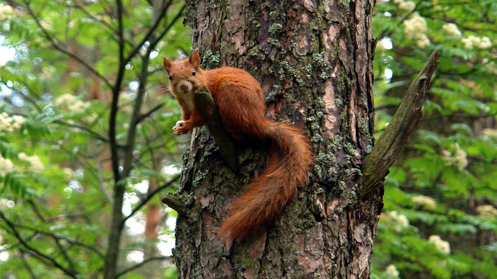 Обои Белка на большом дереве